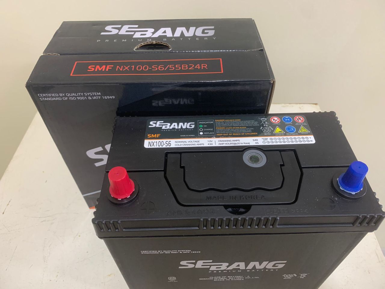 Аккумулятор SEBANG 45 Ah L+ 430 A SMF 55B24R NX100-S6 тонкая клемма Nissan