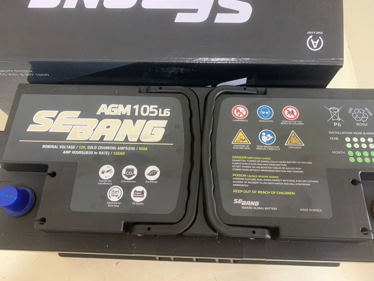 Аккумулятор SEBANG AGM 105 Ah R+ 950 A AGM105L6