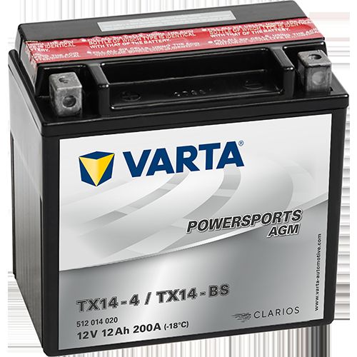Аккумулятор MOTO VARTA POWERSPORTS 12 Ah L+ 200 A EN AGM TX14-BS TX14-4 AGM 512 014 020 150 х 90 х 145