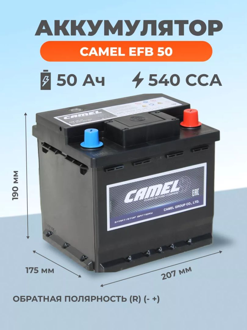 Аккумулятор CAMEL EFB 50 Ah R+ 540 A CCA EFB LN1 50