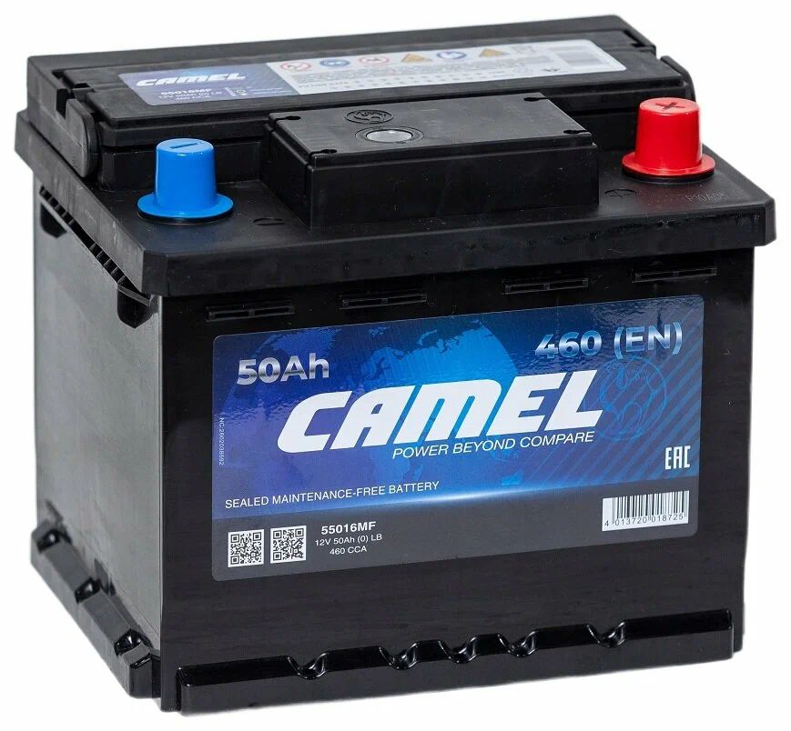 Аккумулятор CAMEL 50 Ah R+ 500 A EN 55016MF 207x175x175 Toyota Aqua NHP10 2-й рест. (2017 - 2021)